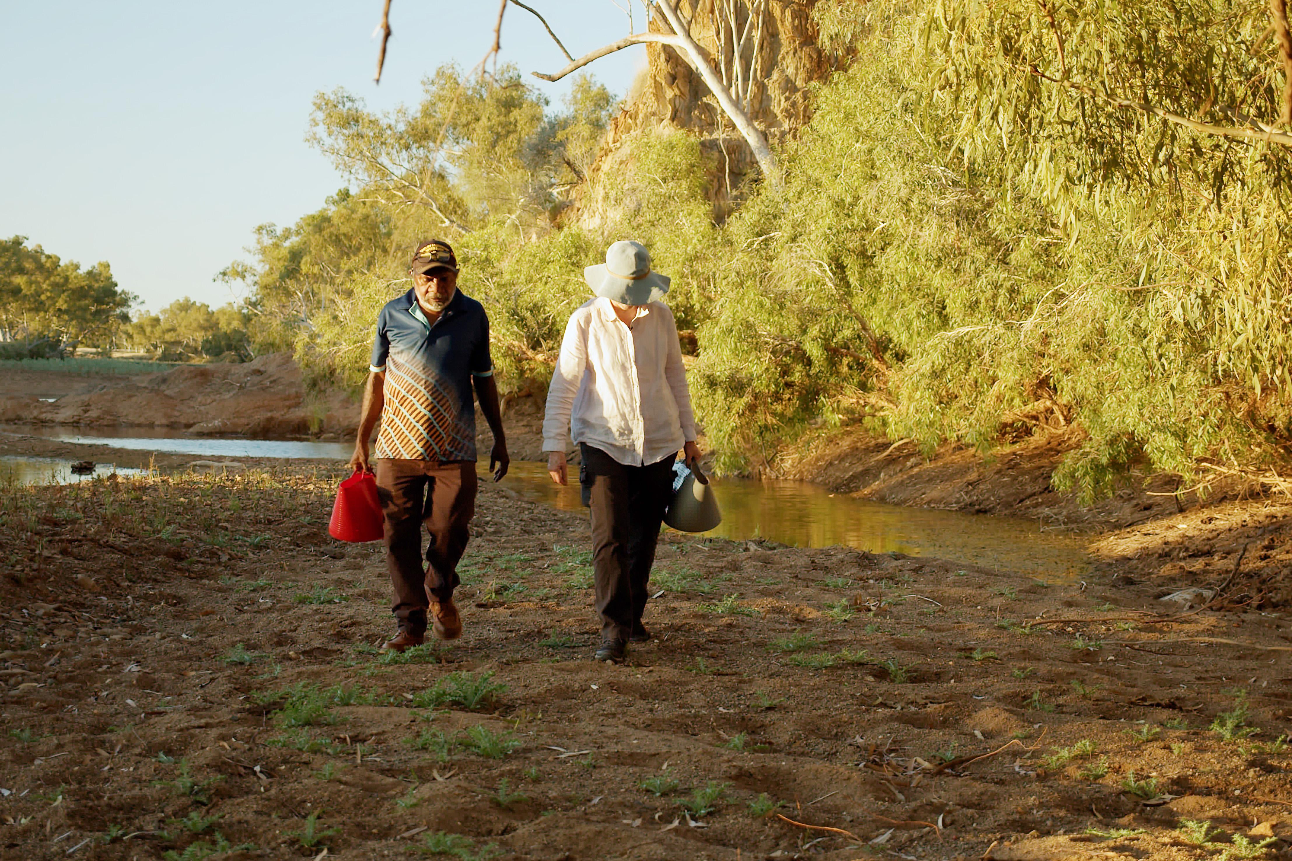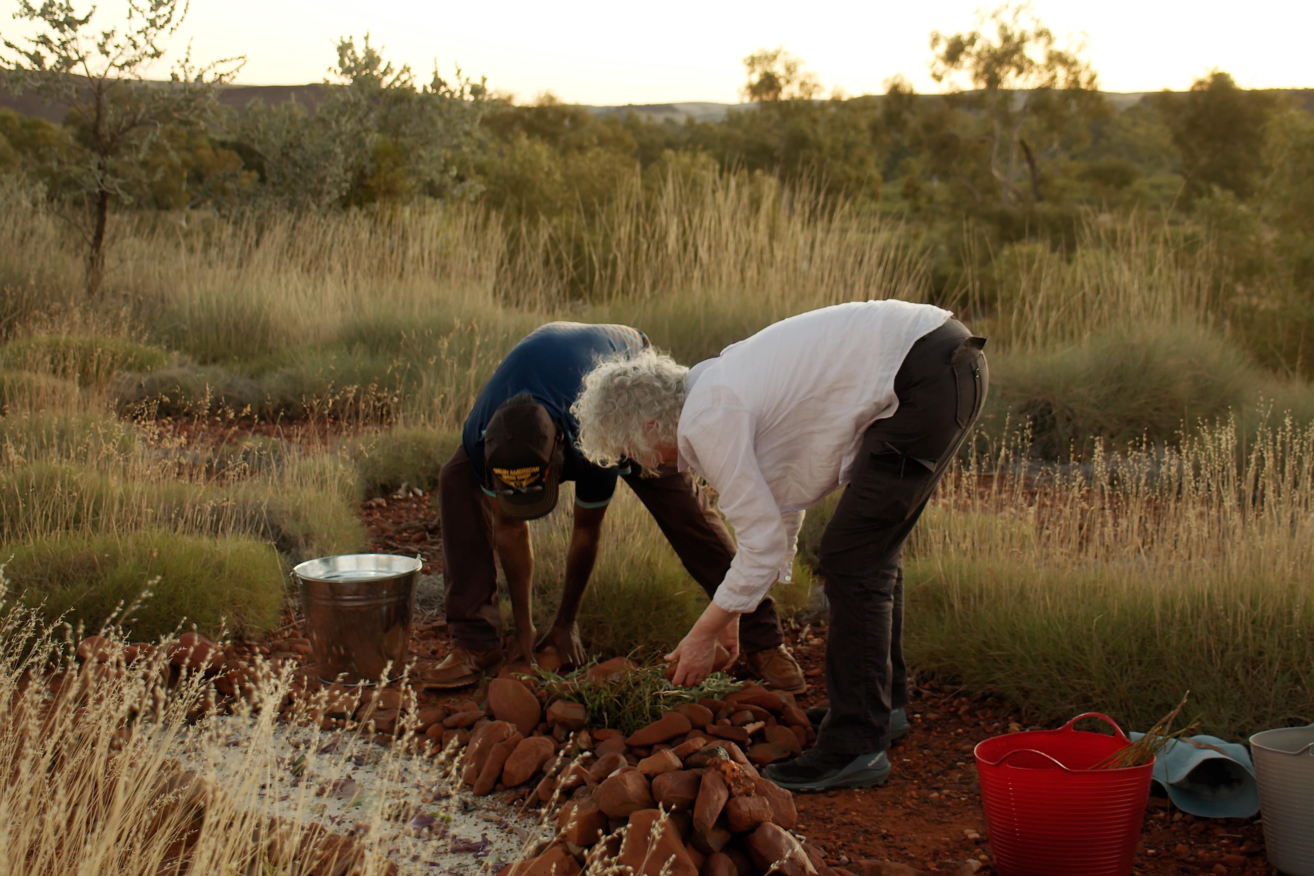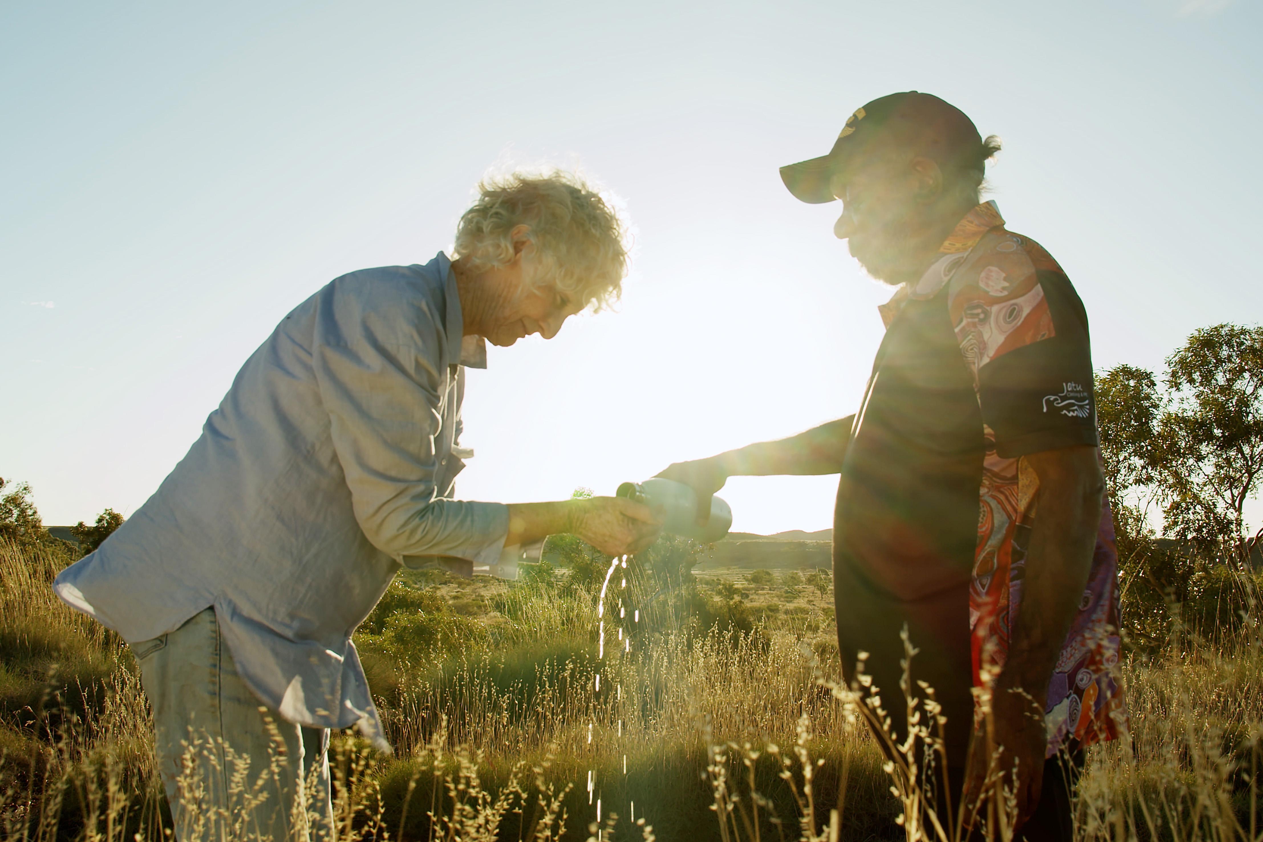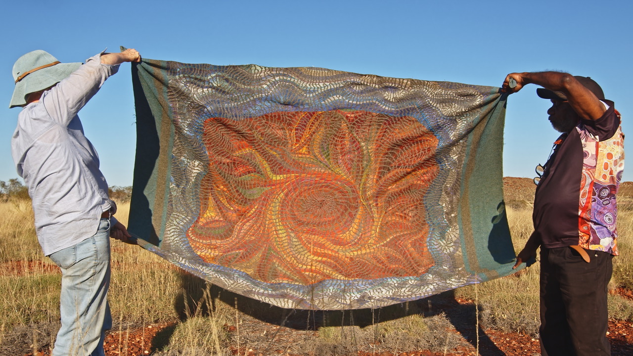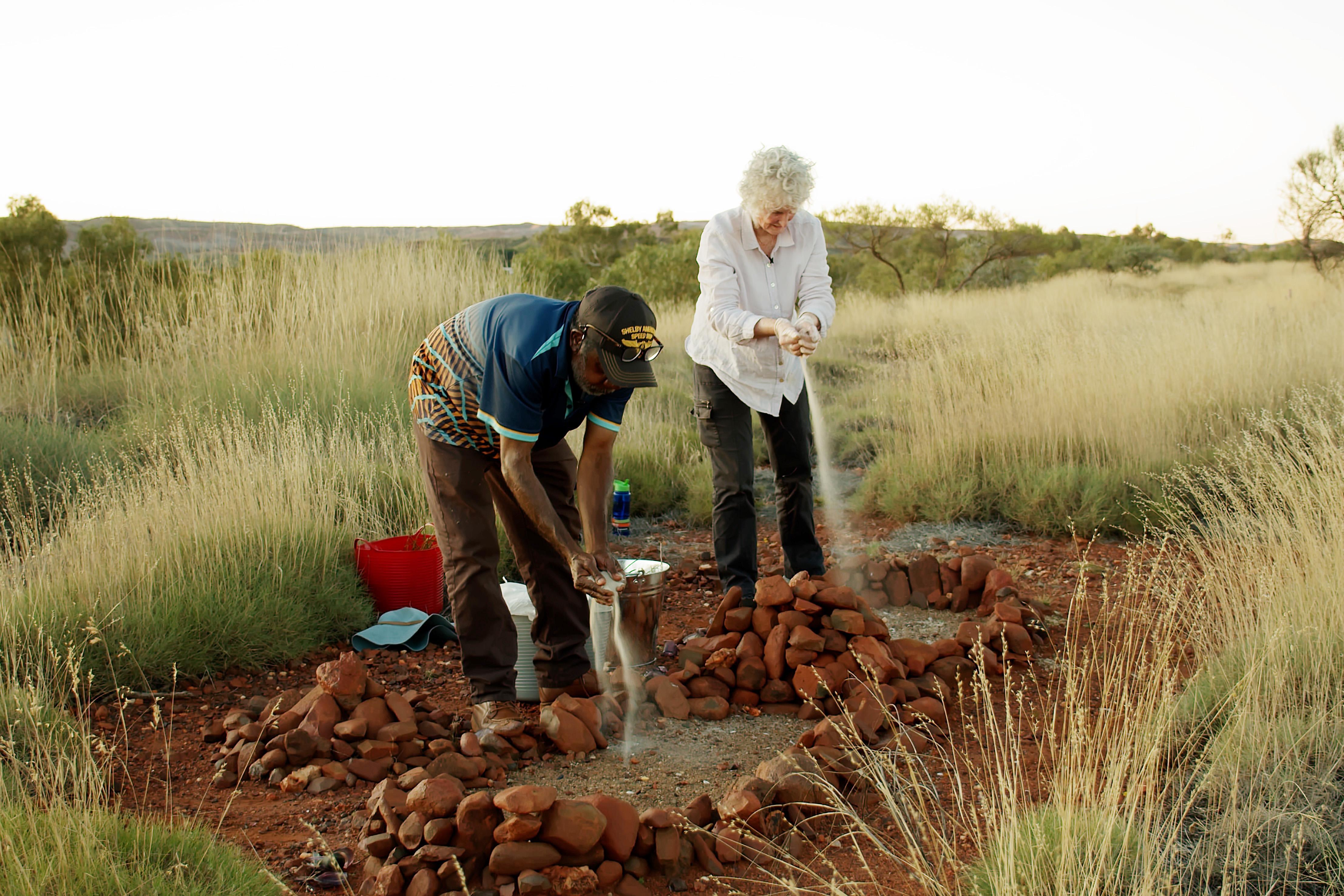 For the past four years, Desmond Taylor and Helen Seiver have worked together on a profound artistic journey of forgiveness and healing. Together, they have sat on country at Nullagine in the Pilbara. They have talked, performed rituals and collaborated on artwork. They have learnt from each other, leant on each other and gradually walked together toward another way; a sensitive and perceptive way forward that gently disrupts the bonds of colonial determination.