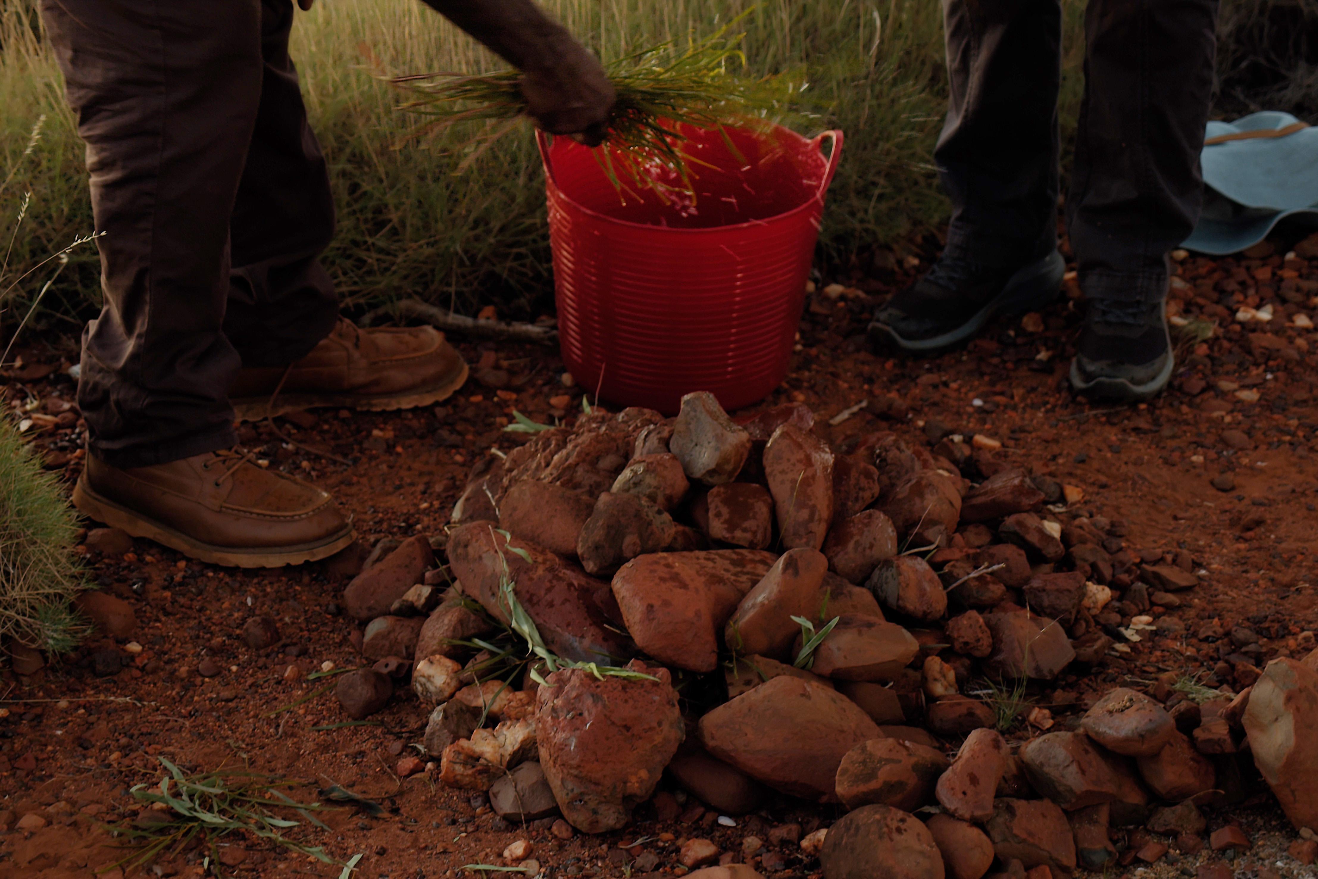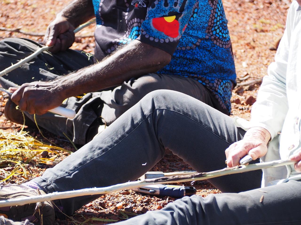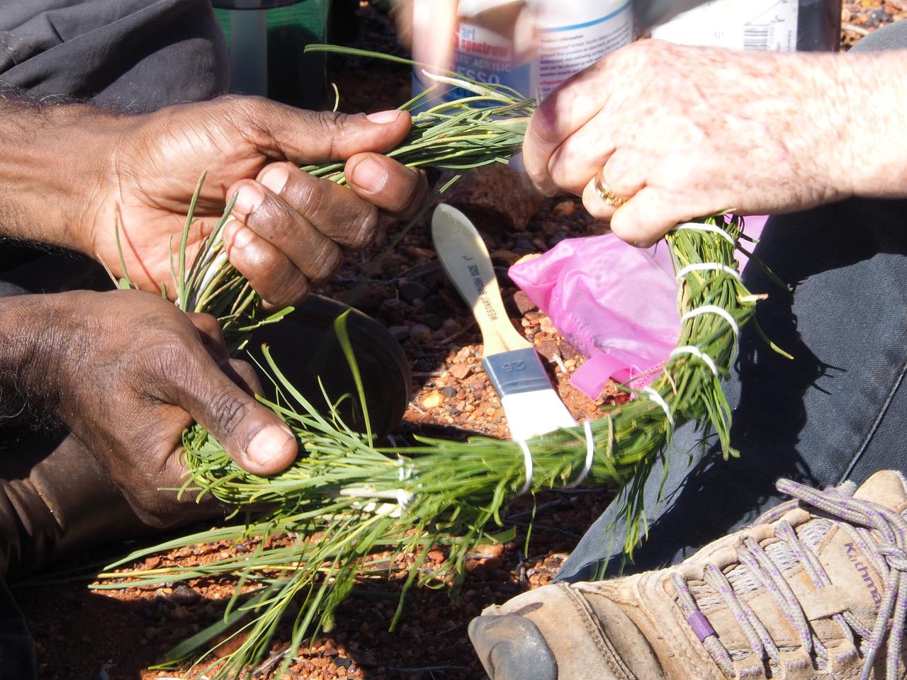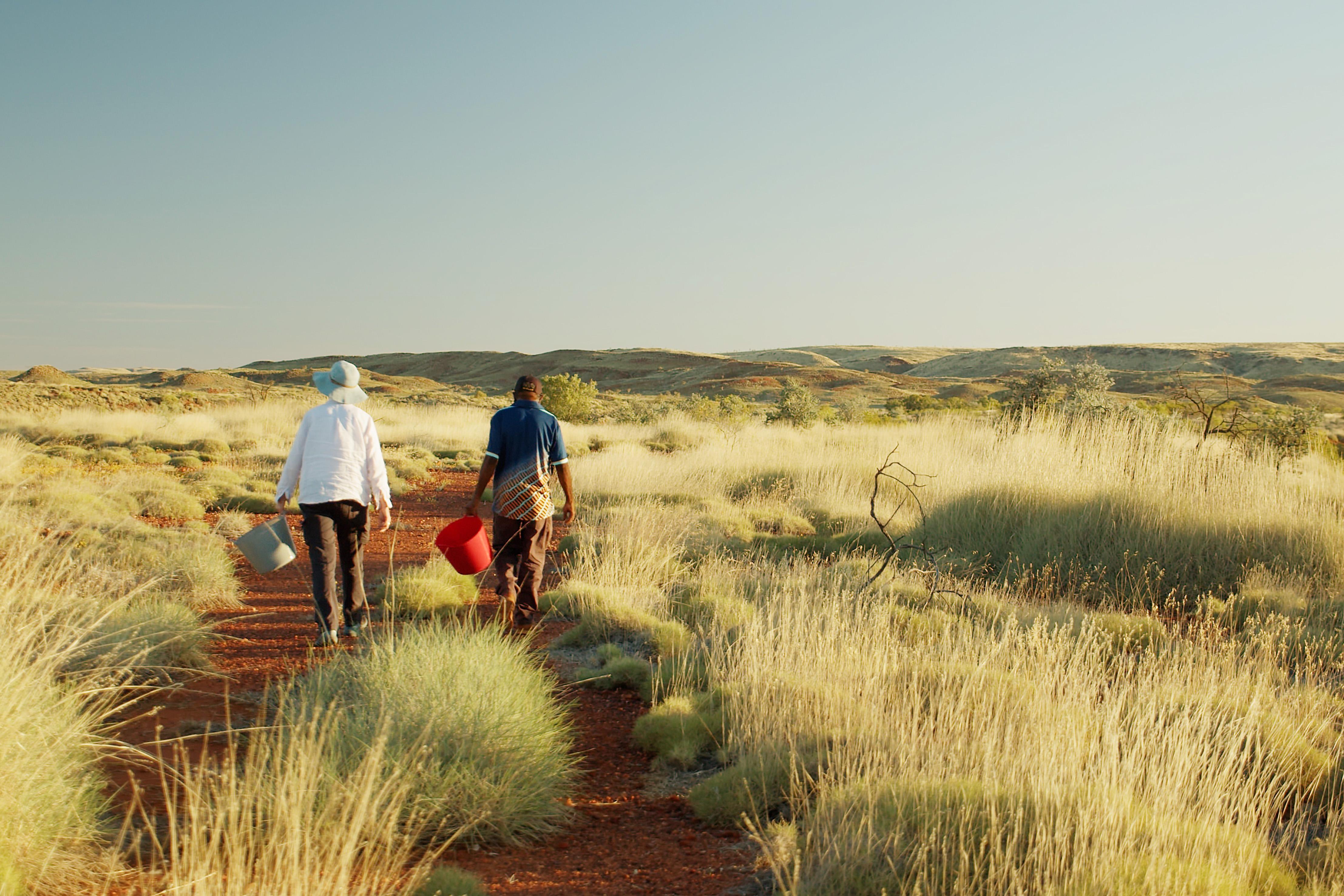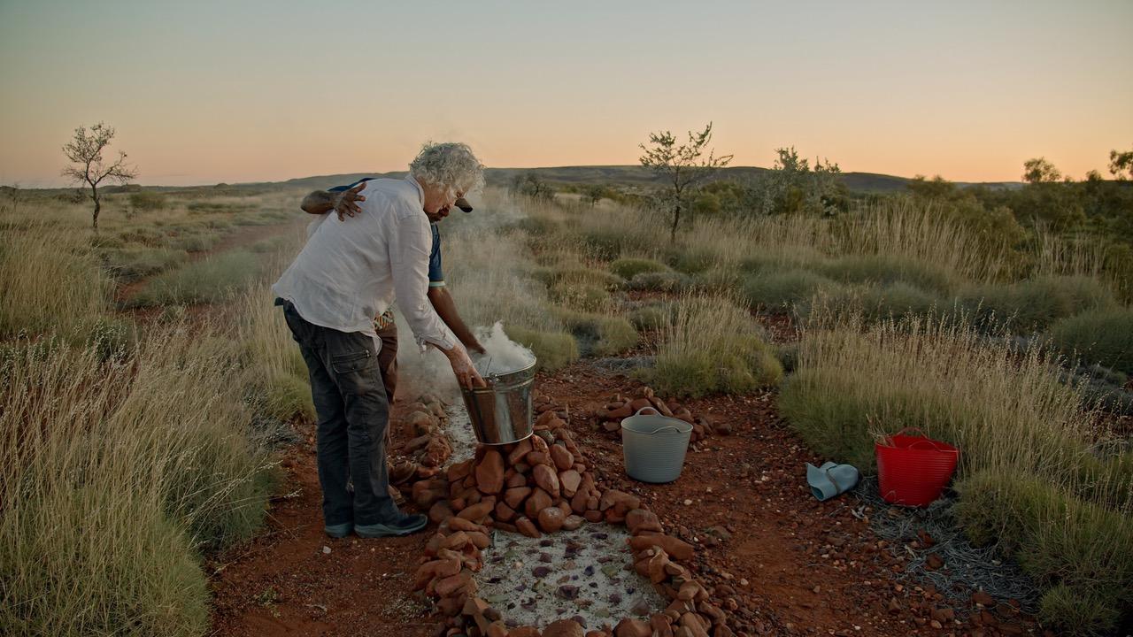 For the past four years, Desmond Taylor and Helen Seiver have worked together on a profound artistic journey of forgiveness and healing. Together, they have sat on country at Nullagine in the Pilbara. They have talked, performed rituals and collaborated on artwork. They have learnt from each other, leant on each other and gradually walked together toward another way; a sensitive and perceptive way forward that gently disrupts the bonds of colonial determination.