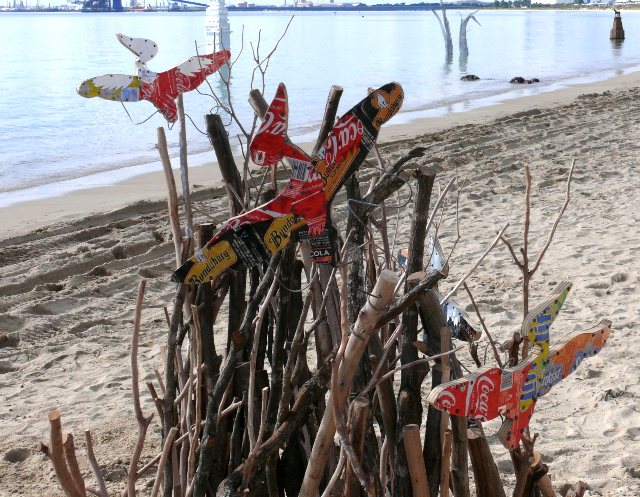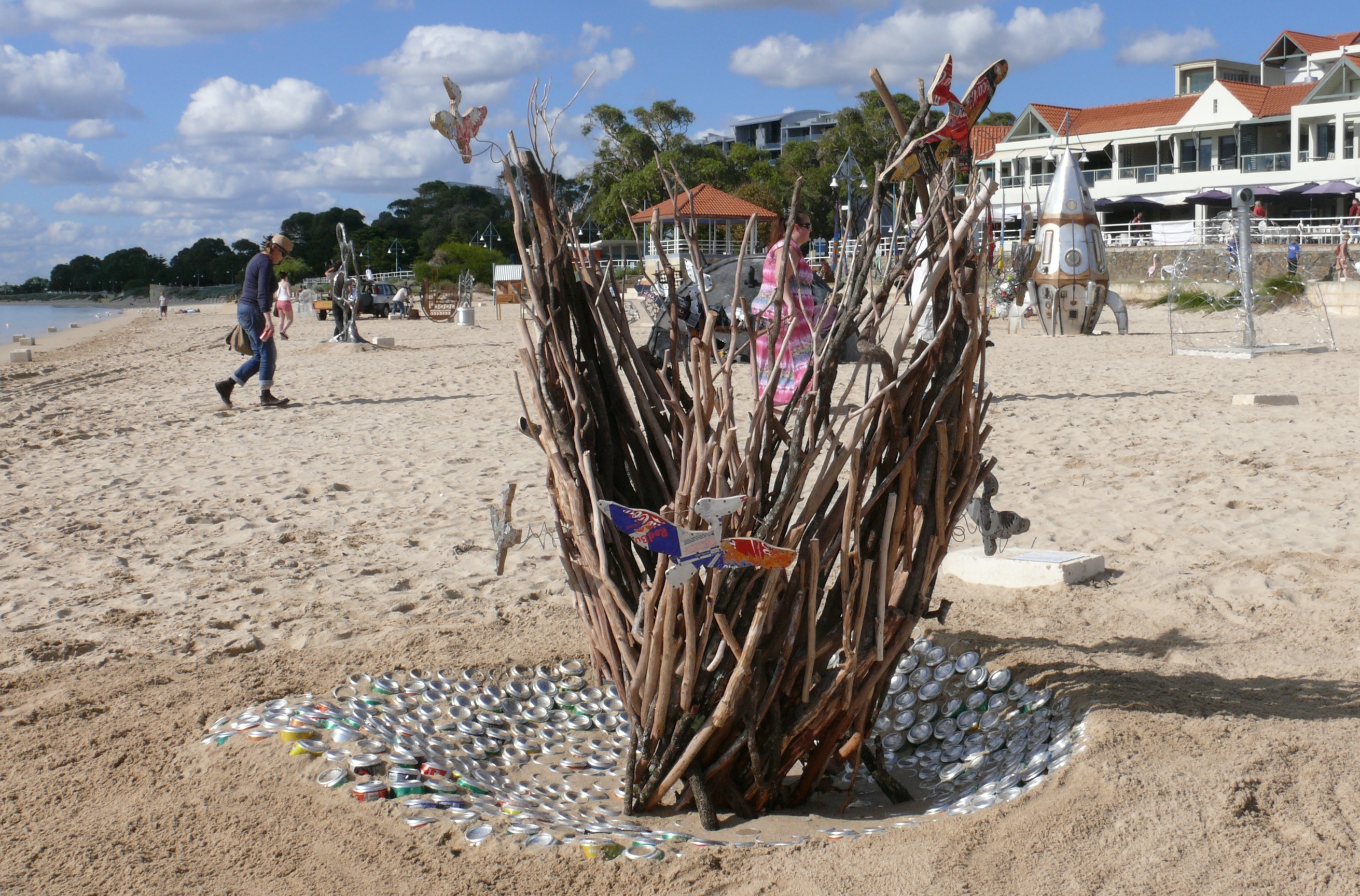 By using the pelican as a symbol for sea birds and discarded aluminium cans for the rubbish polluting our waterways, this work draws attention to the health of our oceans and rivers, not only vital to many species of birds and animals but also crucial to human survival.