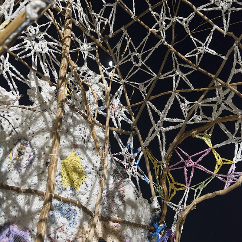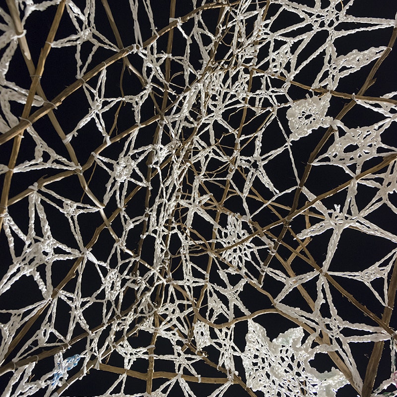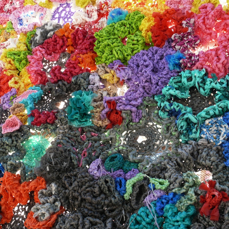 By embellishing the 'home' with common supermarket bags I am seeking to bring a greater domestic consciousness to this worldwide problem.